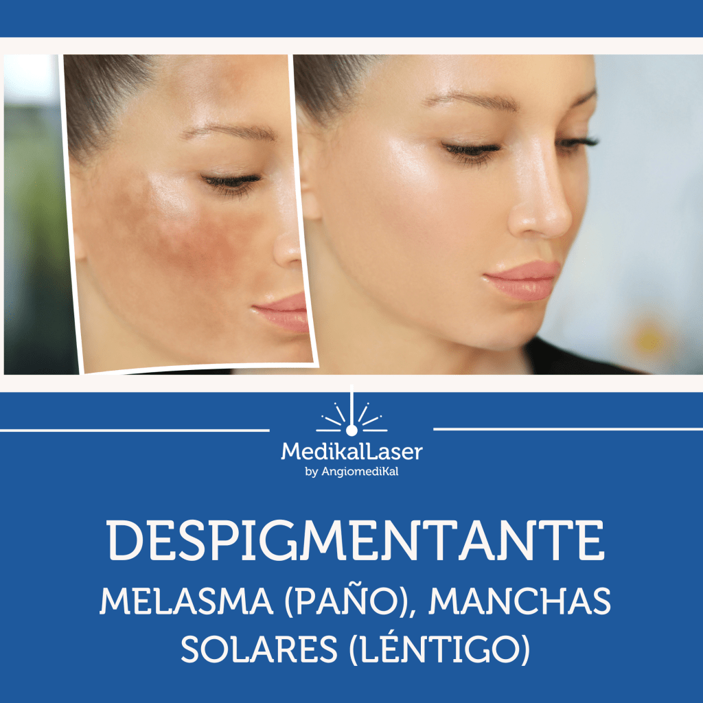 El láser trabaja sobre el exceso de pigmento acumulado en la piel, aclarando manchas como melasma, paño, lentigos solares y pigmentación postinflamatoria.
